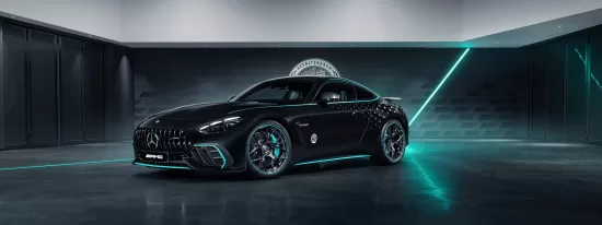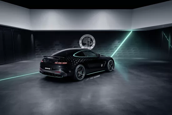 Con numerosos elementos de diseño y detalles de equipamiento individuales, crea un estrecho vínculo con el Mercedes-AMG PETRONAS F1 Team. Incluso el color negro obsidiana metalizado está inspirado en el actual monoplaza de Fórmula 1 del equipo. Lo mismo puede decirse de la decoración de estrellas Mercedes plateadas pintadas a mano en los flancos traseros y de las franjas decorativas de color PETRONAS. Éstas se extienden desde los pasos de rueda delanteros por encima de la línea de cintura hasta el techo. También hay otros elementos de contraste del color de PETRONAS en el splitter delantero, en los flics de las tomas de aire laterales del paragolpes delantero, en los elementos decorativos de los faldones laterales y en el difusor trasero.