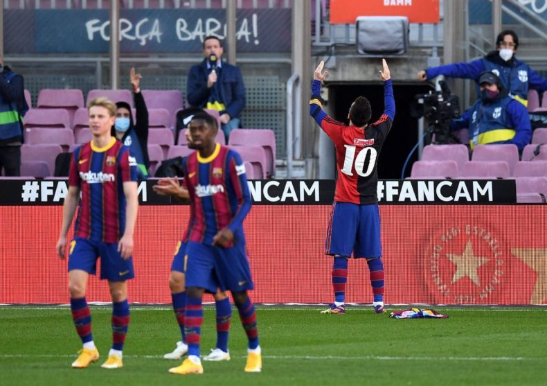 Tras marcar el cuarto y último gol de su equipo ante el club navarro, el argentino se quitó la camiseta azulgrana y enseñó la que llevaba debajo, una zamarra roja y negra que vistió Maradona durante su etapa en Newell’s Old Boys. El árbitro del equipo, Mateu Lahoz, registró el hecho en el acta.
