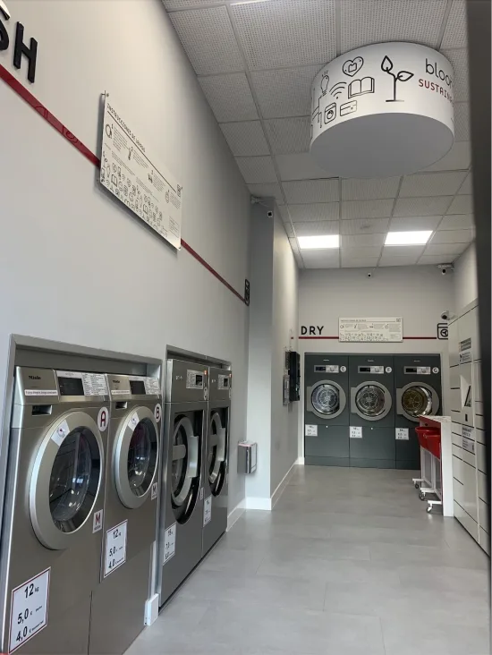La nueva lavandería autoservicio está dotada y equipada con lavadoras y secadoras de la marca Miele, y los detergentes y suavizantes que se utilizan en las coladas son de uso profesional y fórmulas que garantizan un lavado de excelente calidad. Adicionalmente, las secadoras están particularmente diseñadas para cuidar su ropa, ayudando a prolongar la vida de sus prendas.