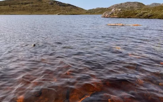 En Groenlandia normalmente nieva en otoño, pero el aumento de las temperaturas provocó que la precipitación cayera en forma de lluvia, según el estudio. El calor también provocó que el permafrost (suelo congelado que almacena una cantidad significativa de carbono orgánico) se descongelara, liberando una gran cantidad de carbono, hierro, magnesio y otros elementos. A medida que la lluvia caía en cantidades récord, arrastró estos metales y carbono recién expuestos del suelo a los lagos de la región occidental de Groenlandia, volviéndolos marrones.
