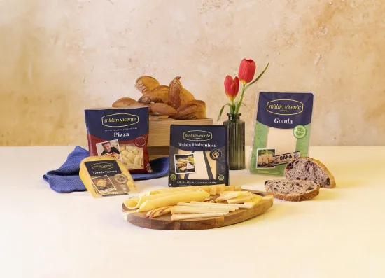 Los quesos rallados de Millán Vicente tienen un propósito claro: ser los aliados perfectos para cocinar platos específicos. Por eso, combinan variedades de queso distintas. Por ejemplo, el especial para Nachos combina Cheddar, Edam y Emmental holandés para alcanzar un fundido perfecto. Por otro lado, el rallado especial para Gratinar está hecho a base de Edam, Goya y Gouda para brindar un toque crujiente a cada plato. No podía faltar un rallado especial para Pizza, con Mozzarella, Edam y Emmental holandés. Por último, el especial para Pasta combina Gouda, Maasdam y Goya para brindar cremosidad a cualquier receta. Todos ellos están pensados para platos determinados, pero su versatilidad abre un mundo de posibilidades, como, por ejemplo, el uso del rallado Pizza en la receta de una tarta de queso. Sin duda, esta gama posee una gran calidad, gracias a la profesionalidad de Gipsy Chef y la gran experiencia de Millán Vicente en la elaboración de quesos cuyo sabor te hace viajar hasta el lugar de origen.