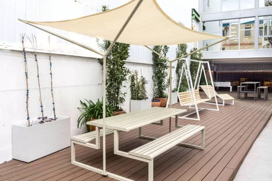 A la par, está el espacio outdoor, un espacio premium ideal para eventos, presentaciones y formaciones. Y cabina insonorizada, también denominadas phonebooth, para mayor comodidad y privacidad dentro del lugar.