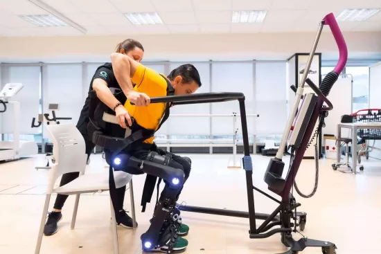 Para ello, emplean tecnologías avanzadas como los exoesqueletos. Se trata de armazones robóticos diseñados para acoplarse al cuerpo de personas con discapacidades motoras, facilitando y mejorando su movilidad. Al utilizar los exoesqueletos bajo supervisión médica, se activan dos procesos fundamentales: plasticidad neuronal y neuromotricidad. La plasticidad neuronal permite que el cerebro forme nuevas conexiones, logrando que áreas sanas asuman funciones de las dañadas, mediante la repetición de movimientos. Por su parte, la neuromotricidad «reprograma» las motoneuronas para que respondan a señales debilitadas o distorsionadas, optimizando el control muscular y la coordinación. Estos procesos son esenciales para mejorar la recuperación funcional del paciente.