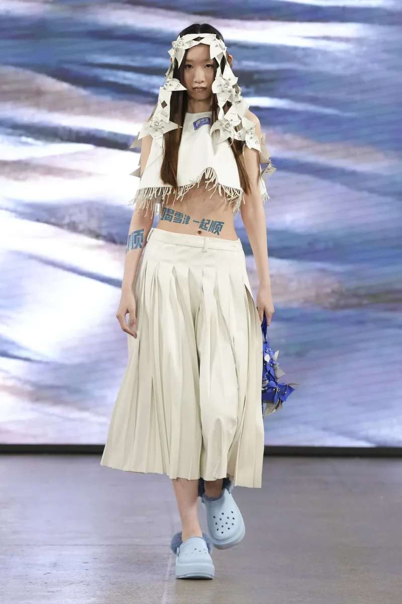 En el corazón de «Fisher Women’s Culture» se halla la fusión del patrimonio cultural inmaterial de la indumentaria femenina de Huian y elementos de la cultura china Baiyue, la cultura de las Llanuras Centrales y la cultura marítima. La colección presenta elementos icónicos como el sombrero cónico amarillo, el pañuelo con motivos florales, la chaqueta corta y los pantalones de pata ancha, símbolos de la resistencia del trabajo de las pescadoras y de su incesante búsqueda de la belleza y el futuro.