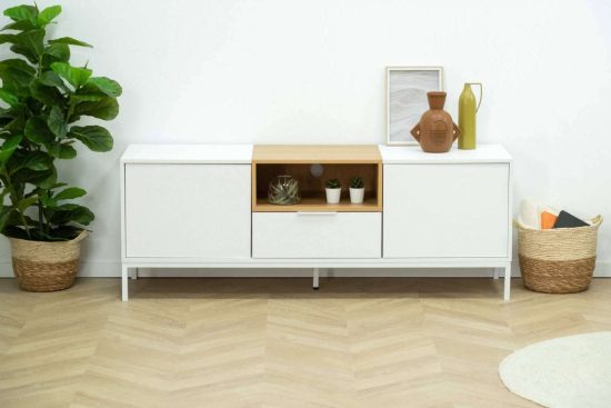 El catálogo de muebles tv baratos de Top Mueble abarca desde piezas minimalistas hasta propuestas de inspiración escandinava o industrial, fabricadas principalmente en melamina de alta densidad con acabados naturales. Estas superficies imitan texturas como la madera clara, el roble o el nogal, y están pensadas para integrarse en entornos contemporáneos, aportando calidez y equilibrio visual.
