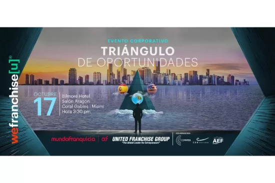 Madrid, 10 de octubre de 2024 – mundoFranquicia, consultora con más de 20 años de experiencia en el sistema de franquicias, y Alfa F, compañía que tiene por objeto la inversión y gestión conjunta de una selección de franquicias, participada mayoritariamente por la consultora mundoFranquicia, se unen a la Asociación Española de la Franquicia (AEF) y a su socio estratégico WeFranchiseU para participar en la jornada “Triángulo de Oportunidades en Franquicias y el Flujo de Capital entre Miami, Madrid y Latinoamérica”, que se celebrará el 17 de octubre de 2024, en el emblemático Biltmore Hotel de Miami, Coral Gables.