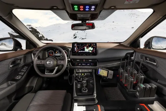 Las modificaciones del X-Trail Mountain Rescue incluyen la sustitución de las ruedas por orugas de nieve, que proporcionan una tracción segura en pistas resbaladizas y con nieve, mientras que los asientos traseros se han retirado para permitir la instalación de una camilla, para el transporte de esquiadores heridos al centro médico más cercano, así como un asiento para un profesional médico.