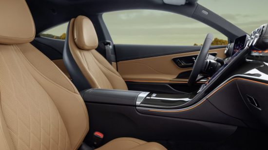 En el interior, llama la atención la pantalla de instrumentación independiente de 12’3 pulgadas, totalmente digital, la pantalla central de 11’9 pulgadas, orientada al conductor en disposición vertical de fácil manejo y, la iluminación ambiental dinámica con 64 colores. Si se desea, puede extenderse desde la consola central hasta debajo de las salidas de aire exteriores. En cada una de las puertas, una franja de luz recorre el contorno del reposabrazos y la línea de cintura hasta la parte trasera. Otro elemento destacado, son los asientos delanteros de diseño deportivo integral, desarrollados exclusivamente para el CLE. En combinación con el sistema opcional de sonido envolvente 3D Burmester, cada uno de ellos con dos altavoces a la altura de los reposacabezas, se crea una experiencia musical especialmente individual y envolvente, con Dolby Atmos y Spatial Audio cerca de los oídos.