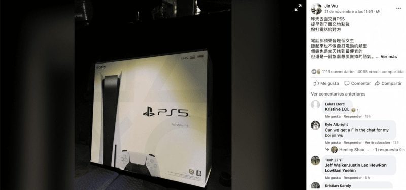 Según, Jin Wu, el comprador, adquirió el dispositivo de segunda mano el pasado 21 de noviembre, informó el protagonista a través de su página de Facebook, después de que el vendedor le asegurara que había sido su mujer la que le obligaba a poner el artículo a la venta. «Es mi mujer quien quiere venderla», escribió en su mensaje.»Parece que las mujeres aún pueden notar la diferencia entre una consola PS5 y un purificador de aire», prosiguió.