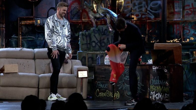 El invitado llevó varios regalos a David Broncano, entre ellos el dorsal y el atuendo con el que se ha proclamado primero en el campeonato de Europa en su categoría. El presentador le dio las gracias pero también se quejó del olor del petó que parecía que no lo había lavado desde que realizó la carrera. El cómico lo pasó bastante mal cuando intentó ponerse el atuendo por encima del traje.