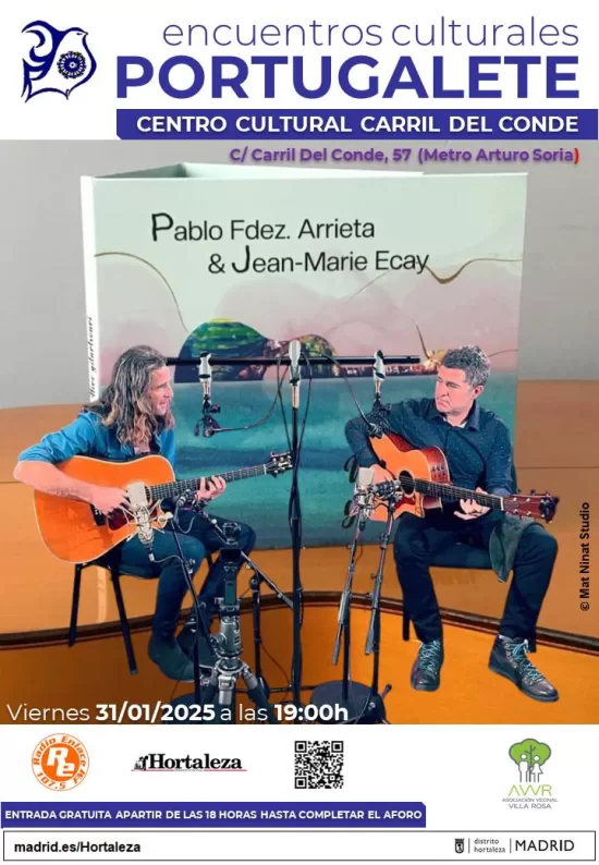 Pablo Fernández Arrieta y Jean Marie Ecay, han presentado hoy su último disco “Nire gitartxoari” en Madrid  en el Centro Cultural Carril del Conde.