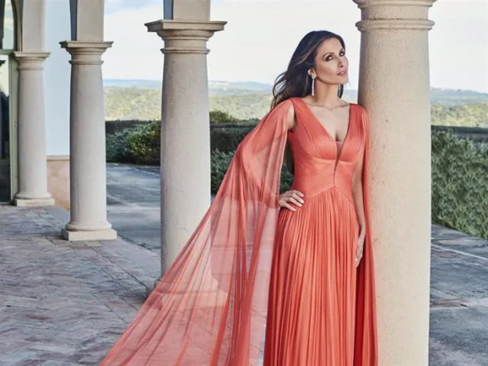 Dirigida a la mujer que busca destacar y dejar huella, la colección refleja la inspiración de Andalucía, incorporando colores vibrantes y detalles que rinden homenaje a la belleza de Córdoba. Un tejido estrella de la firma, el crep, adquiere protagonismo en vestidos de fiesta de silueta recta diseñados por Paloma Cuevas, destacando en tonos intensos como rojo y fucsia. Mangas-capa de georgette, cinturones metálicos y deslumbrantes broches y collares de pedrería agregan un toque de luz y magia a cada creación.