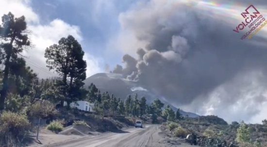 Durante la mañana de hoy se ha derrumbado parte del cono principal. Imágenes de las 11.30 (hora canaria) desde la carretera de S. Nicolás (Tacande) / During this morning part of the main cone collapsed. Footage at 11.30 (Canarian time) from S. Nicolás Road (Tacande) #lapalma pic.twitter.com/qSaepJBD9h
