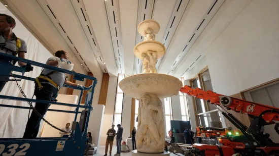 Precisamente, Iraburu ha recogido imágenes inéditas del montaje del museo, desde las restauraciones de textiles hasta los traslados de piezas monumentales –como las columnas salomónicas–, pasando por el montaje de vitrinas, el acondicionamiento de la muralla árabe o el complejo proceso de la iluminación.