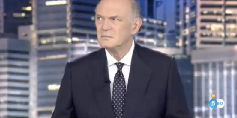 Las cámaras de Telecinco captaron la cara de circunstancia del periodista Pedro Piqueras cuando desde el programa ‘Sálvame’ se dio paso a los informativos en la tarde noche del lunes.