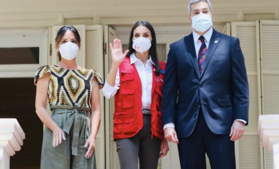 Como en otros viajes anteriores de este tipo, la Reina ha usado durante todas sus visitas desde que aterrizó a última hora del martes en Asunción el distintivo chaleco de color rojo de la Agencia Española de Cooperación Internacional para el Desarrollo (AECID).