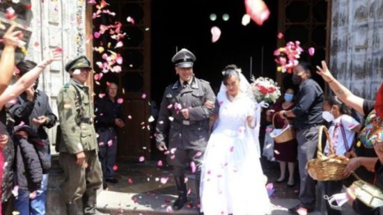 La pareja celebró su enlace el pasado viernes en el estado de Tlaxcala (centro), el mismo día que Adolf Hitler y Eva Braun contrajeron nupcias. La novia utilizó una esvástica en su vestido de novia, mientras que su novio estaba vestido como oficial de las SS.