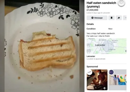 Un sándwich a medio comer se volvió rápidamente tendencia en Marketplace de Facebook. El bocadillo se vende por un millón de libras esterlinas.