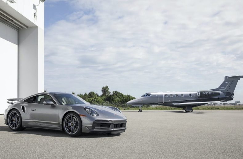 La firma automovilística Porsche y la empresa aeronáutica Embraer han iniciado una colaboración por lo que, los clientes que compren uno de los diez jet privados Embraer Phenom 300E de edición limitada, también podrán adquirir un Porsche 911 Turbo S personalizado con el mismo estilo.