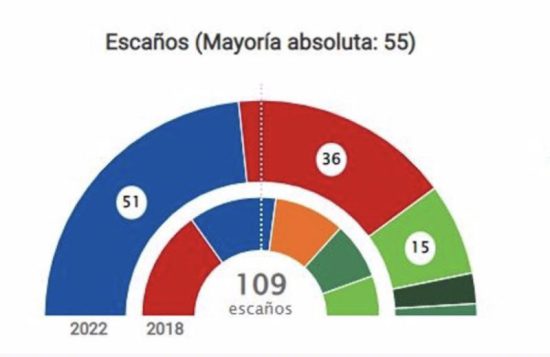 Por su parte, el PSOE consigue 33 diputados –los mismos obtenidos en las pasadas elecciones autonómicas– y el 26,77% de votos.