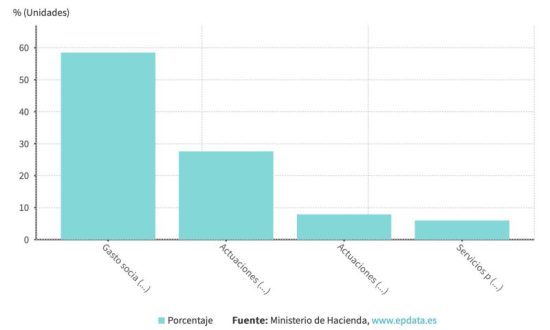 En cifras, el gasto social recibirá 266.391 millones de euros del presupuesto nacional (sin los fondos de la UE), las ‘actuaciones de carácter general’ 125.970 millones; las de ‘carácter económico’ 35.894 millones y los ‘servicios públicos’ 27.395 millones de euros.
