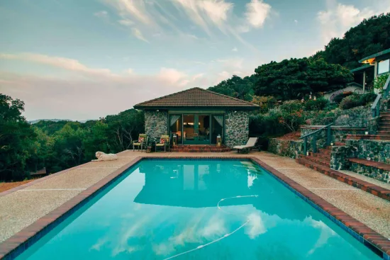 Para el recubrimiento de tu piscina de obra, una de las opciones más en tendencia es la piedra natural de Bali de la firma SKB Sukabumi. Es una elección ideal gracias a su belleza, durabilidad y resistencia, que además, por su color verde-azulado, creará un efecto de agua cristalina en tu piscina.