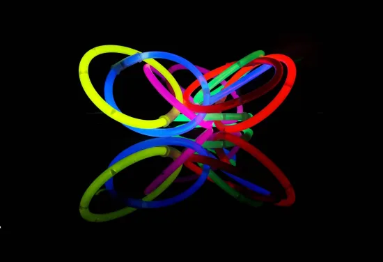El rasgo más destacable de las pulseras luminosas es su fluorescencia. Solo basta con doblarlas ligeramente para que un efecto químico las comience a iluminar. Si se sacuden con fuerza, toda la discoteca se llena de luces increíbles.