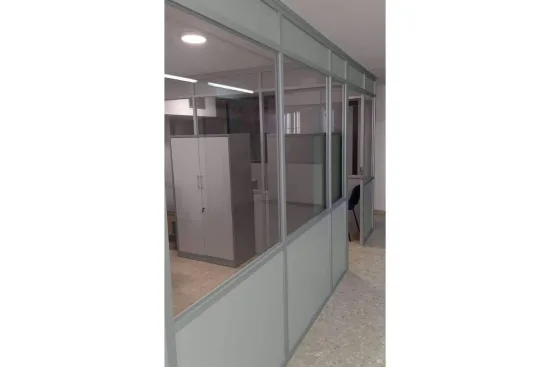 En primer lugar, esta solución ofrece una estética superior al pladur o los muros de obra. En este sentido, las mamparas divisorias dotan de un aire moderno al espacio de trabajo. Además, permiten separar pequeños espacios manteniendo un concepto abierto, ya que las transparencias crean una imagen de proximidad y confianza, tanto para los trabajadores como para los clientes.
