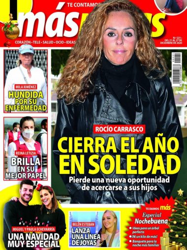 En la revista ‘Más y más’ Rocío Carrasco pierde la oportunidad de acercarse a sus hijos este 2020 y cerrará el año en soledad. Mila Ximénez en su peor momento debido a su cáncer. Paula Echevarría y Miguel Torres preparan sus Navidades más especiales a punto de tener a su primer hijo en común.