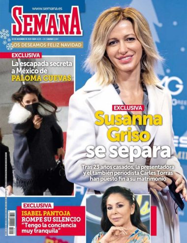 En la revista Semana, Susanna Griso se separa de su marido, Carles Torras, tras 23 años casados. La escapada secreta de Paloma Cuevas a México. Declaraciones exclusivas de Isabel Pantoja sobre su conflicto familiar.