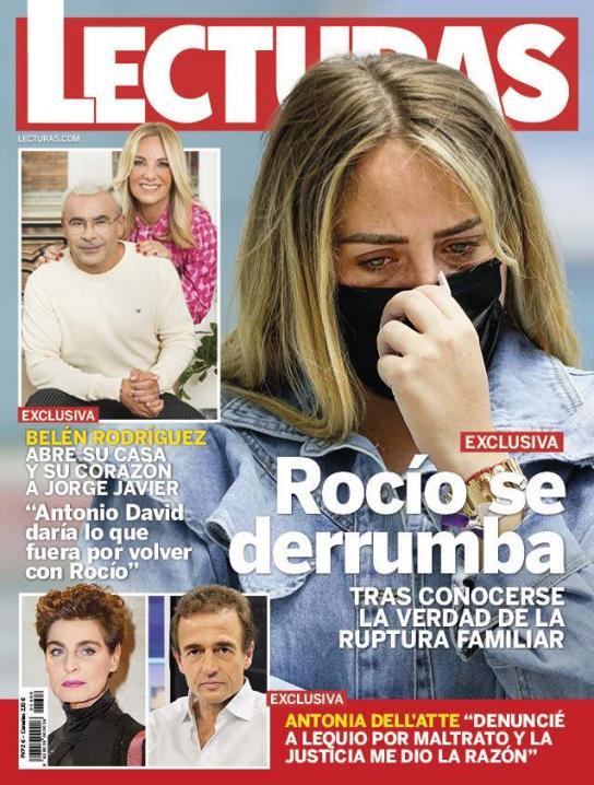 La pena infinita de Rocío Flores copa la portada de la revista Lecturas, la hija de Rociito y Antonio David se derrumba tras conocer el testimonio de su madre en Telecinco. Antonia Dell`atte asegura que denunció a su ex, Alessandro Lequio por maltrato y que la Justicia le dio la razón. Por último, la colaboradora de Telecinco, la periodista Belén Rodriguez charla con Jorge Javier Vázquez y afirma que «Antonio David daría lo que fuera por volver con Rocío».