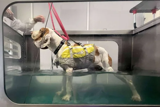 En la rehabilitación veterinaria, cada vez cobra más importancia el uso de la hidroterapia. Esta técnica consiste en usar el medio acuático para realizar ejercicios que favorecen la resistencia muscular o mejora la marcha, entre otros beneficios.
