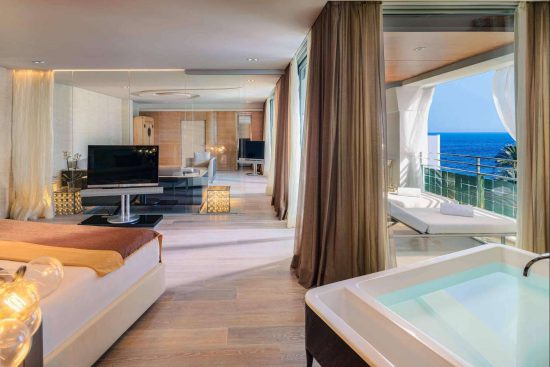 Hotel Aguas de Ibiza Grand Luxe Hotel es considerado uno de los mejores hoteles de la isla balear, dentro del segmento de los establecimientos hoteleros de 5 estrellas, gracias a sus modernas y cómodas instalaciones.