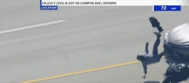 Un coche embiste a un motociclista que estaba siendo perseguido por la policía en plena autopista