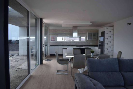 Una muestra de ello, es su reforma más reciente en Tinajo en Lanzarote. Una vivienda unifamiliar nueva en la cual realizaron una ampliación en la cocina, incorporaron revestimiento de granito y mobiliarios modernos que le aportaron el toque vanguardista a esta área del hogar. Por otro lado, el elemento estrella de la reforma son sus amplios ventanales colocados en la sala de la vivienda que ofrece una inmejorable vista al mar.