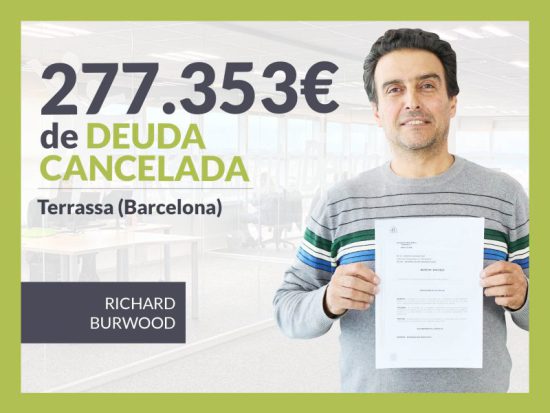 Repara tu Deuda Abogados, despacho de abogados líder en España en la tramitación de la Ley de Segunda Oportunidad, ha logrado una nueva cancelación de deuda en Terrassa (Barcelona). Mediante la gestión de Repara tu Deuda Abogados, el Juzgado Mercantil nº1 de Barcelona (Catalunya) ha dictado exoneración del pasivo insatisfecho en el caso de Richard Burwood, vecino de Terrassa (Barcelona), que había acumulado una deuda de 277.353 euros a la que no podía hacer frente. VER SENTENCIA