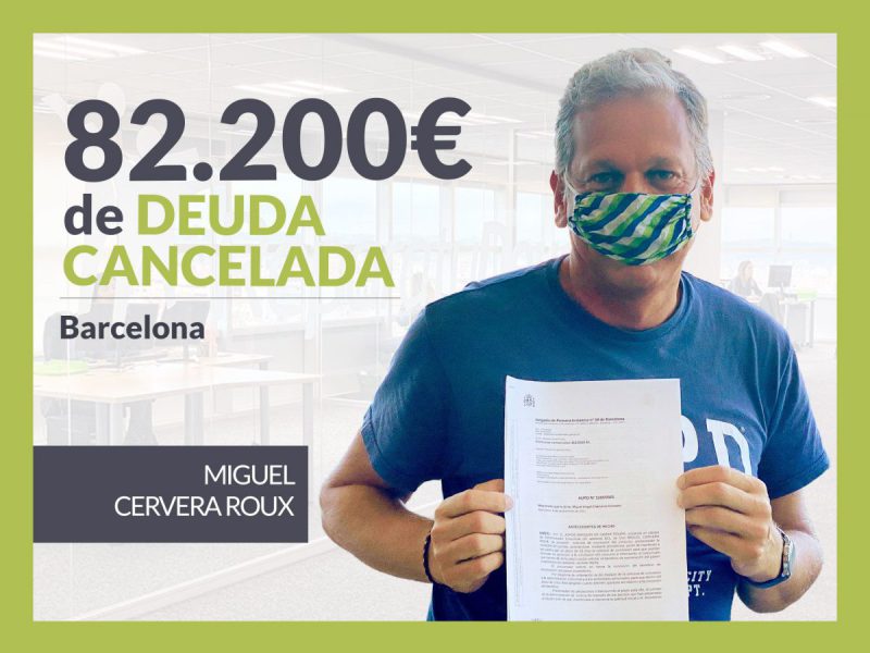 Repara tu Deuda Abogados, despacho de abogados líder en España en la tramitación de la Ley de Segunda Oportunidad, ha logrado otra cancelación de deuda en Barcelona (Cataluña). Mediante la gestión de Repara tu Deuda Abogados, el Juzgado de Primera Instancia nº50 de Barcelona (Cataluña) ha dictado exoneración del pasivo insatisfecho en el caso de Miguel Cervera, que había acumulado una deuda de 82.200 euros a la que no podía hacer frente. VER SENTENCIA