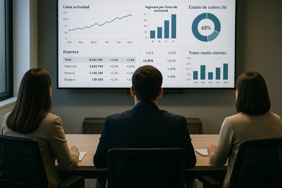 Además del desarrollo tecnológico, RGB Mejorando Empresas ofrece un modelo de acompañamiento mensual que convierte al cuadro de mando en el núcleo de la planificación táctica de cada cliente. Durante estas sesiones, se analizan los datos con una visión experta y se generan recomendaciones personalizadas para optimizar procesos, mejorar la rentabilidad y orientar recursos hacia los objetivos estratégicos definidos.