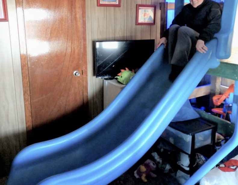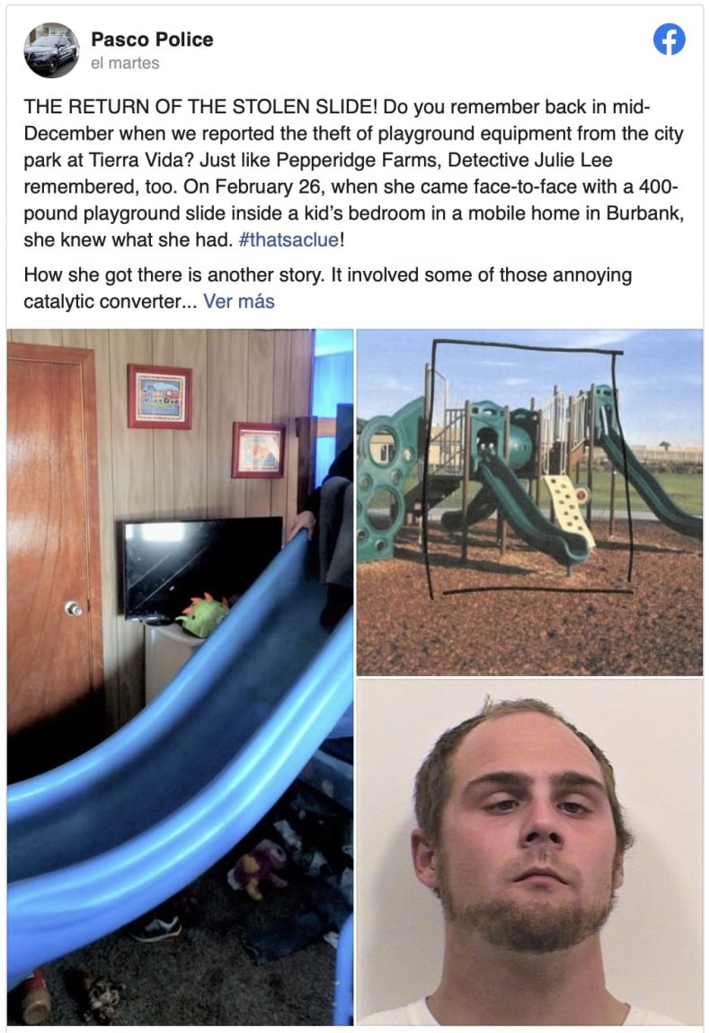 El norteamericano Dustin Bushnell fue arrestado después de haber robado un tobogán de 180 kilos de un parque infantil del estado de Washington (EE.UU) para colocarlo directamente en la habitación de su vástago.
