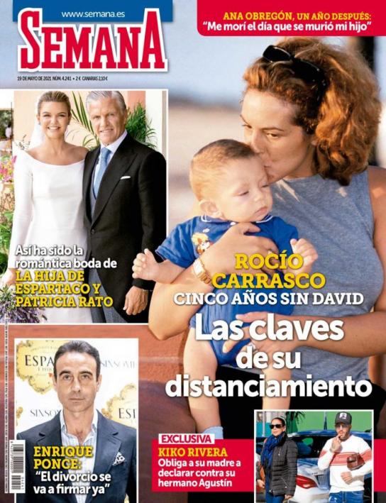 Una semana más, Rocío Carrasco centra la atención de la revista, que da las claves sobre la ruptura del matrimonio de la hija de ‘La más grande’ con su ex, Antonio David. La boda de la hija de Espartaco y Patricia Rato, Alejandra Ruiz, ocupa también un lugar destacado en la portada. Además, Enrique Ponce asegura que está a punto de firmar los papeles del divorcio tras su ruptura con Paloma Cuevas. En exclusiva: Kiko Rivera cita a su madre a declarar contra su tío Agustín Pantoja.