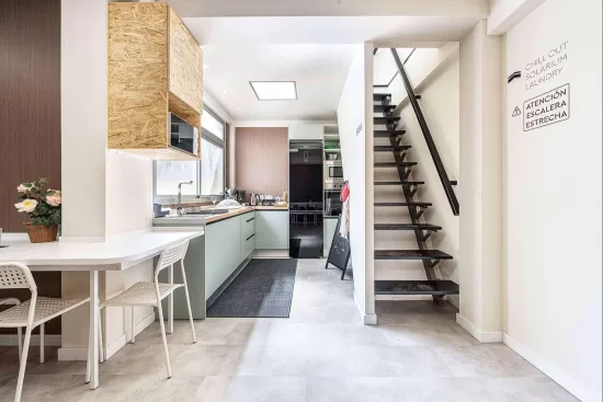 El hostal ofrece, además, un servicio gratuito de lavandería de autoservicio y zonas comunes diseñadas para fomentar la interacción entre los huéspedes, en un entorno relajado y multicultural.