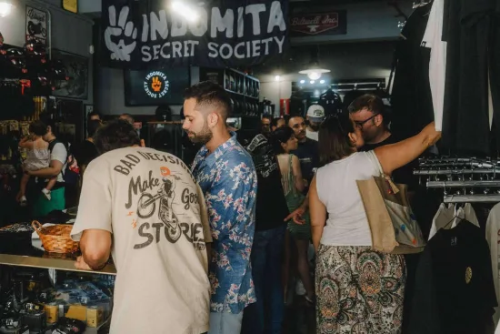 La joven marca de moda Indómita celebró el pasado viernes su primer pop up en La Vieja Escuela, una popular tienda motera ubicada en Palma de Mallorca y que, desde hoy, será también su primer punto de venta físico. El evento congregó a más de un centenar de personas, que pudieron conocer en persona al equipo y a Nico, conocido como ‘Ride Me Five’ y fundador de Indómita.