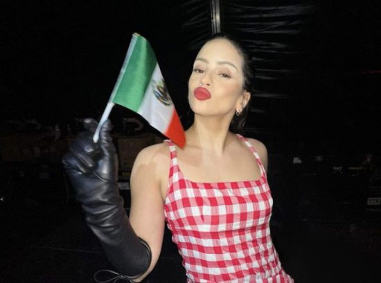 Antes de volver al escenario, le regalaron una bandera de México, la tomó en sus manos y con el aire se ondeó. Rosalía, mientras, sonreía.