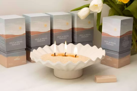 Con una propuesta innovadora, Samsa incorporó velas de arena perlada. Este producto, una cera vegetal granulada de alta fusión, se distingue por su diseño, versatilidad y sostenibilidad.