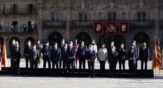 Durante toda la pandemia, Sánchez ha convocado periódicamente reuniones con los presidentes autonómicos para una acción coordinada frente al virus bajo la “cogobernanza”. En su gran mayoría fueron reuniones telemáticas, durante el periodo de confinamiento y de restricciones, hasta un total de 16 encuentros virtuales, entre ellos uno en el que participó la presidenta de la Comisión Europea, Úrsula Von der Leyen, por los fondos europeos, semi presencial en el Senado, más los presenciales en La Rioja (julio 2020) y Salamanca (julio 2021).