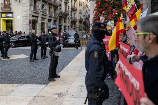 Los independentistas se han concentrado bajo el lema ‘Basta engaños!’ y se han colocado en la parte de la plaza más cercana a La Rambla, mientras que los convocados por Revuelta se han manifestado bajo el lema ‘¡Paremos la traición de la amnistía!’ y están en el otro extremo de la plaza, adonde ha acudido también el líder de Vox en el Ayuntamiento de Barcelona, Gonzalo de Oro.