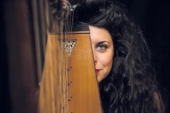Tras el recital ofrecido este domingo en el salón de actos de la DPH junto al actor, payaso y dramaturgo Pepe Viyuela, Sara Águeda se asomará en solitario a las 20.00 horas al bosque de columnas de la Colegiata de Santa María la Mayor de Bolea (Huesca) y, frente a su retablo mayor, considerado una obra maestra de la pintura del primer renacimiento español, tañerá su arpa de dos órdenes –uno de los instrumentos más relevantes del Siglo de Oro– y pondrá voz y alma a muchos de los romances y canciones del siglo XVI en los que asoma la mirada femenina.