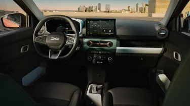 Las actualizaciones internas del Spring son tan extensas como las revisiones exteriores. Hay una arquitectura de tablero completamente nueva, con un panel de instrumentos digital de siete pulgadas en todas las versiones. Los modelos Expression se conformarán con un soporte para teléfono inteligente, en lugar de una pantalla central de información y entretenimiento, una característica típica de Dacia, pero Extreme obtiene una pantalla táctil de 10 pulgadas con actualizaciones aéreas y navegación en vivo, además de conectividad telefónica con Android y Apple.
