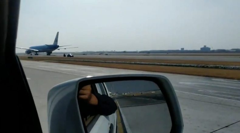 «No sé cómo llegó el coche a la pista», se oye decir a la persona que está filmando. «El aeropuerto es un lugar seguro, pero ni siquiera han logrado evitar que el automóvil se meta dentro. Es una brecha en la seguridad. Terrible», continúa.