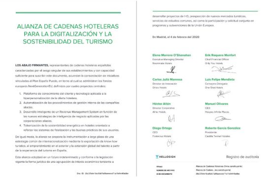 Para Alberto Bosque, coordinador del Museo del Turismo, “Es, sin duda, un documento histórico por partida doble. Primero, porque la constitución de la Alianza no tiene precedentes en la historia de la hotelería en España, ni probablemente en el mundo. Segundo porque la hotelería española está en la vanguardia mundial con la certificación blockchain en formato NFT (non fungible token) de un documento colaborativo”.